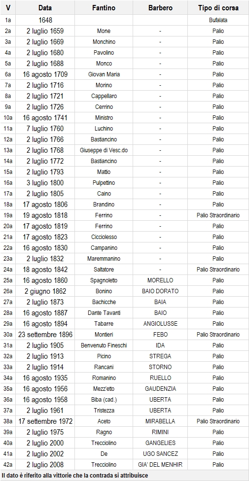 L'ultima vittoria della Contrada Sovrana dell'Istrice risale al 2 luglio 2008