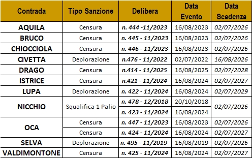 97 e 98 del Regolamento del Palio, a seconda della gravità dell'infrazione o della mancanza commessa,